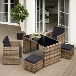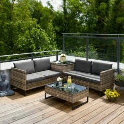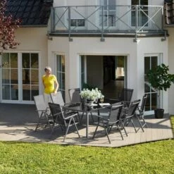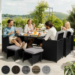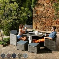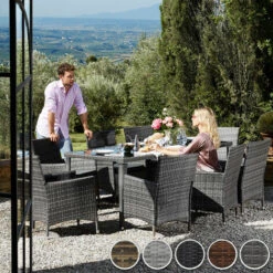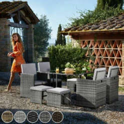 TECTAKE Salon De Jardin MONACO Résine Tressée 8 Personnes 8 Fauteuils 1 Table + 1 Housse Gris – Gris