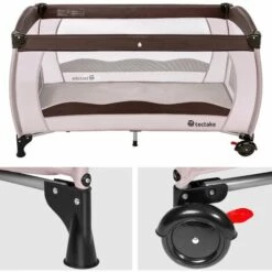 TECTAKE Lit Parapluie, Lit Bébé Pliant 126x65x80cm + 1 Sac De Rangement Panneaux Latéraux En Tissu Maillé Opaque – Petit Lit Parapluie, Parc Enfant, Lit D´appoint – Marron Café