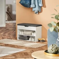 TECTAKE Meuble D’entrée ? Chaussures Et Porte Manteaux En Acier 66 Cm X 187 Cm X 33 Cm Blanc – Blanc