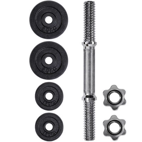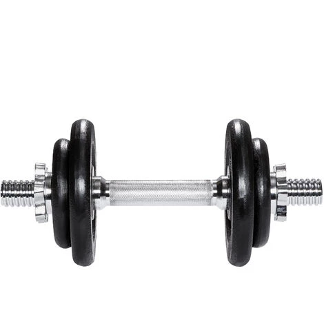 1 Haltère Court et 4 Poids, Haltère de Musculation en Acier et en Fonte Noir TECTAKE. • Avec cet haltère, vous n’avez même plus besoin d’aller à la salle de sport ! • Vous pouvez effectuer vos séances de musculation chez vous grâce à cet haltère court. • La musculation est une des meilleures méthodes pour garder la forme et prévenir de nombreuses maladies. • Les muscles, les tendons, les ligaments, les articulations et le tissu conjonctif sont renforcés en faisant divers exercices de musculation. • Les disques d’haltères sont fixés de manière sûre au moyen de bagues de serrage en forme d’étoile.