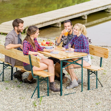 1 Table et 2 Bancs, Table de Jardin, Table de Réception, Table de Camping Pliable en Bois 176 cm x 69 cm x 76 cm Marron TECTAKE. • Qu’il s’agisse d’anniversaires, de fêtes d’associations ou d’autres événements, l’ensemble robuste pour chapiteau invite dans tous les cas à se rassembler pour un moment agréable. • Passez des soirées conviviales avec votre famille, vos amis sur ces bancs avec dossiers confortables. • L’aspect naturel de ces bancs et cette table et leur style élégant vont vous séduire. • Les bancs et la table de pique nique sont fabriqués en bois robuste.
