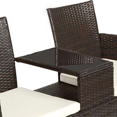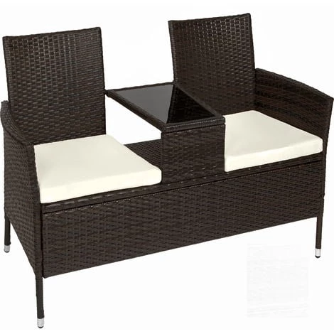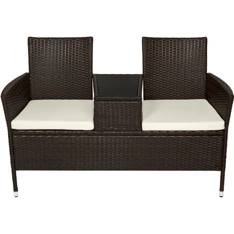 Notre canapĂ© de jardin 2 places tectake : l’alliĂ© de votre pause cafĂ©, goĂ»ter et mĂŞme apĂ©ritif ! Prenez place dans l’un des fauteuils et dĂ©gustez votre boisson favorite tout en picorant ce qu’il y a de prĂ©sentĂ© sur la table. Sur un balcon ou une terrasse, on apprĂ©cie sa conception originale qui permet Ă 2 personnes de discuter et d’admirer la vue. Qui n’aime pas contempler un coucher de soleil depuis sa vĂ©randa ? La structure de ce fauteuil de jardin est en acier recouverte de rĂ©sine tressĂ©e. Ce matĂ©riau que l’un retrouve frĂ©quemment dans l’univers du mobilier de jardin est facile Ă entretenir et est adaptĂ© Ă une utilisation en extĂ©rieur.