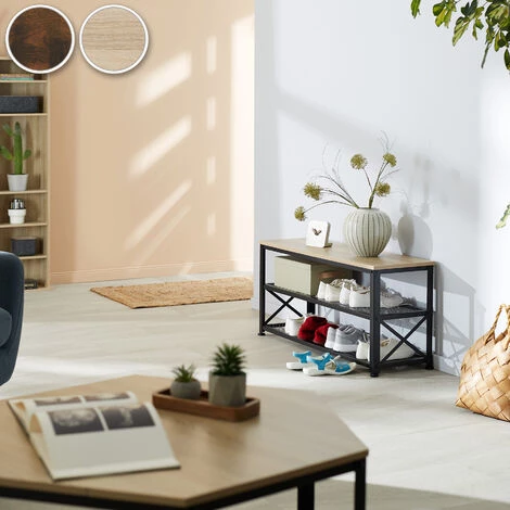 L’étagère Ă chaussures Blackpool de tectake dans un style industriel accueillant vous souhaite la bienvenue chez vous. Le banc en panneau MDF stable dotĂ© d’un veinage Ă©lĂ©gant Ă l’aspect bois vous permet d’échanger confortablement vos chaussures de sport contre des pantoufles d’intĂ©rieur dĂ©contractĂ©es. Quatre pieds Ă vis rĂ©glables en hauteur assurent la stabilitĂ© et mĂ©nagent le sol grâce Ă leurs embouts en plastique. Grâce Ă sa forme allongĂ©e et Ă sa faible profondeur, ce meuble facile Ă entretenir trouve sa place dans presque tous les couloirs d’entrĂ©e et offre nĂ©anmoins un grand espace de rangement – rangez et trouvez rapidement toutes vos chaussures prĂ©fĂ©rĂ©es grâce Ă l’élĂ©gant organisateur pour chaussures Blackpool de tectake.