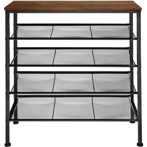 Avec l’étagère à chaussures Bournemouth pratique de tectake, vous choisissez un espace de rangement chic. Son plateau MDF veiné et son cadre en acier rectiligne lui donnent une allure typique du style industriel. Les quatre grilles fines peuvent se monter à plat ou inclinées et offrent suffisamment de place pour ranger les sneakers, les escarpins, les ballerines, etc. Grâce à sa faible largeur et à sa profondeur limitée, ce meuble élancé trouve sa place presque partout. L’étagère à chaussures Bournemouth rustique de tectake crée un style industriel tendance dans votre entrée.