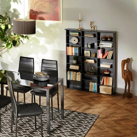 Choisissez un meuble élégant pour votre collection de CD et DVD avec l’étagère range-CD de tectake. Vous pouvez aménager son grand espace de rangement selon vos envies grâce aux tablettes réglables en hauteur. Avec son revêtement en mélamine, cette étagère crée de jolis accents et convainc par sa surface anti-rayures, tout en ne nécessitant que peu d’entretien. Ce meuble solide en pan-neaux MDF offre en plus une excellente stabilité.