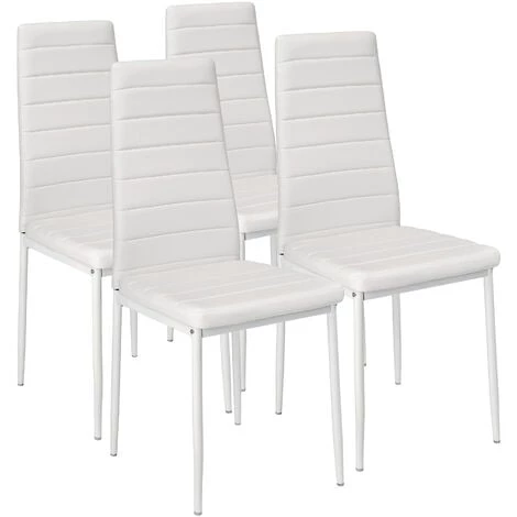 4 Chaises de salle à manger ou de cuisine design, Chaise de Salon, Meuble de salon, Mobilier de Salon TECTAKE. À la fois épuré et moderne, cet ensemble de chaises élégantes embellira votre salle à manger, votre cuisine, la salle d’attente de votre cabinet, ou encore votre café. Nos chaises sont légères, souples et très confortables. Leur assise présente un niveau de confort remarquable. Le rembourrage est d’environ 3 cm d’épaisseur. Le revêtement en matière synthétique résistant est très agréable et facile à nettoyer. De par leur légèreté, les chaises sont faciles à porter. N’abîme pas les sols grâce aux embouts en plastiques qui évitent les rayures et atténuent les bruits.