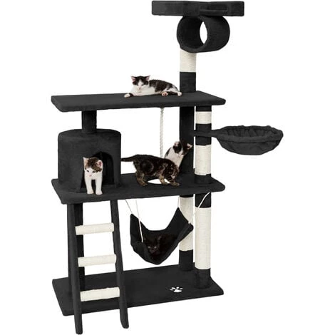Arbre à chat 141 cm MARCEL, Griffoir, Grattoir, Sisal, Tronc + Corde de jeu + Hamac 105 cm x 60 cm x 141 cm TECTAKE. L’arbre à chat est le passe-temps favori de tous les chats. Un arbre à chat permet aux chats de faire leurs griffes et à vos meubles de rester intacts. Il convient aussi parfaitement comme endroit pour dormir ou comme cachette confortable. Les chats sont des animaux très curieux et aiment avoir en vue tout ce qui doit être vu. C’est pourquoi un arbre à chat est exactement ce qui convient à votre compagnon à quatre pattes. Cet arbre à chat offre de nombreuses possibilités pour jouer, se faire les griffes ou se cacher. Il plaira sans aucuns doutes à votre chat.