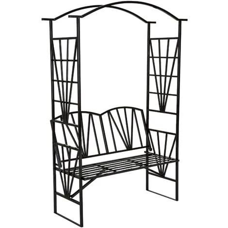 Arceau de jardin, Arche de jardin, Gloriette, Pergola, Tuteur à Fleurs, Plantes Grimpantes, Rosiers – 210 cm x 114 cm – Avec banc – Noir – TECTAKE. L’arceau à roses offre un bon soutien à vos plantes grimpantes et à vos rosiers. Il est en outre très esthétique dans tous les jardins et garantit une ambiance romantique. Un banc 2 places vient en plus agrémenter l’arche et offre un bel endroit confortable où se détendre. Idéal pour rosiers ou plantes grimpantes.