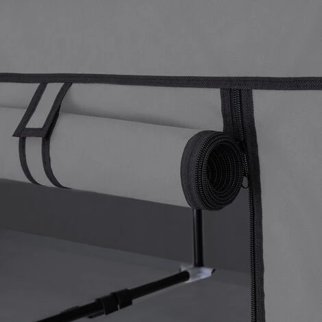 Vous avez besoin d’une armoire pratique pour ranger toutes vos affaires et vos vêtements ? La penderie en tissu tectake est la solution idéale grâce à sa polyvalence et à son énorme capacité. Notre armoire offre un espace de rangement maximal sans être encombrante grâce à ses deux grands compartiments dotés les tringles à vêtements et ses étagères. Le rideau de porte, facile à nettoyer, se referme à l’aide d’une fermeture éclair. Il vous garantit un accès rapide et facile à vos vêtements et les protège contre la poussière et la saleté. Avec ses dimensions réduites une fois démontée, à son poids léger et à son montage rapide sans outils, cette penderie en tissu est facile à transporter et donc parfaite pour vos voyages.