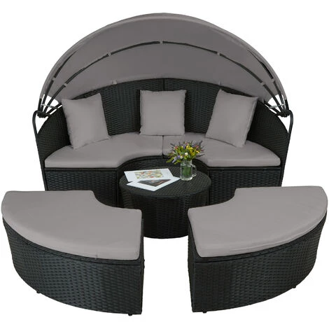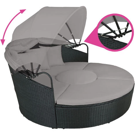 Notre bain de soleil rond modulable SANTORIN tectake mettra à coup sûr une touche d’élégance à votre jardin. Son design raffiné est conçu pour une double utilisation : groupés, les différents éléments font un vaste bain de soleil ou canapé de jardin; séparés, vous avez alors un salon de jardin avec table basse. 2 mobiliers de jardin en 1 ! Abritez-vous de la brise et du soleil avec le pare-soleil rétractable. L’entretien du bain de soleil est facilité grâce à sa structure recouverte de résine tressée. Ce matériau d’aspect similaire au rotin naturel se nettoie à l’aide d’un chiffon humide.