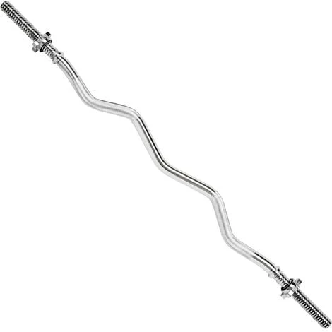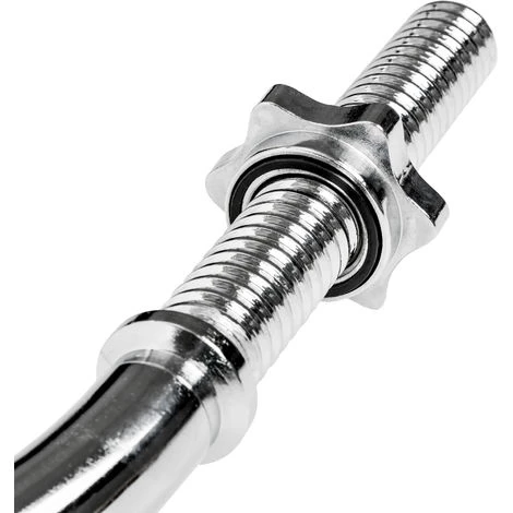 Barre de Musculation, Barre d’Haltères, Barre à Disques, Barre de Curl en Acier Chromé Moleté + 2 Fermoirs 120 cm x 3 cm TECTAKE. • Avec la barre d’haltères de qualité professionnelle, vous pouvez effectuer vos séances de musculation à la maison, sans devoir vous déplacer pour aller à la salle de sport. • La barre à disques longue vous permet d’effectuer un entraînement ciblé de groupes de muscles ainsi qu’un entraînement du corps entier. • L’entraînement aux haltères vous permet de concevoir de nombreux exercices pour augmenter votre performance sportive et votre endurance musculaire et pour développer vos muscles. • La barre est moletée pour pouvoir bien la maintenir et empêcher les mains de glisser. • La barre coudée Ez est dotée de fermoirs en forme d’étoiles qui assurent la fixation des disques sur la barre. • Deux filetages trapézoïdales situés aux extrémités de la barre d’haltères renforcent la fixation des disques. • Avec 3 cm de diamètre, la barre de curl dispose d’une mesure standard, ce qui vous permet d’utiliser presque tous les disques d’haltères courants.