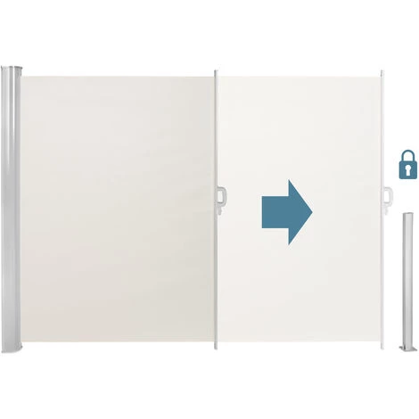 Paravent, Brise Vue, Store Latéral Vertical Rétractable Balcon Jardin Terrasse Aluminium + Fixations TECTAKE. Ce magnifique paravent latéral rétractable offre une protection efficace contre les rayons du soleil (UV), le vent et préserve votre intimité et celle de vos convives. Idéal pour une utilisation sur la terrasse, le balcon ou dans le jardin. Grâce à l’enrouleur automatique, le paravent se déplie et se replie facilement et rapidement grâce au mécanisme avec ressort de tension intégré dans l’étui de fixation murale. Le tissu en polyester possède un revêtement hydrofuge résistant. Longueur ajustable, extensible jusqu’à 3 mètres. L’installation est effectuée en seulement quelques étapes. Il est cependant nécessaire de percer des trous dans le sol et le mur pour fixer convenablement le paravent. Les vis, chevilles et fixations murales sont compris dans la livraison.