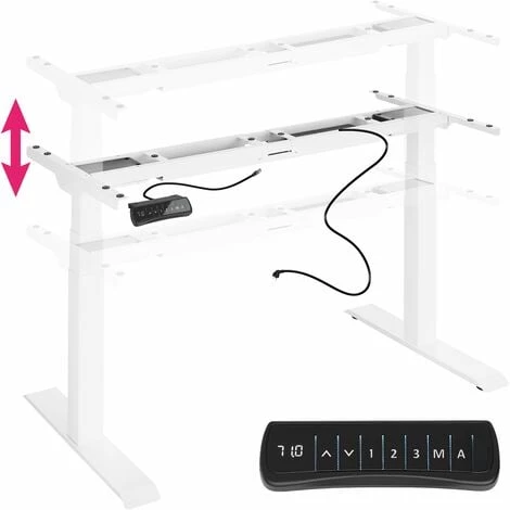 Aménagez-vous un espace de travail confortable avec notre bureau assis debout tectake ! Son piètement de table ergonomique vous permet d’adapter la hauteur du poste de travail à votre taille. Notre bureau moderne soulage votre dos et améliore votre bien-être en vous proposant de changer votre position. Profitez de la posture debout pour soulager vos jambes et diminuer les risques d’apparition de troubles musculo squelettiques (TMS). Il a été prouvé que les réunions debout duraient moins longtemps, vous pouvez ainsi gagner en productivité ! Pour ceux qui préfèrent rester assis, bénéficiez d’un bureau sur mesure en réglant avec précision la hauteur de travail souhaitée. Il est bien-entendu possible d’alterner les deux selon votre convenance sans déranger vos collègues : en quelques secondes, règlez le plateau grâce au boîtier de commande relié aux 2 moteurs électriques silencieux. Le mouvement est rapide mais fluide, le contenu de votre tasse ne se renversera pas ! Doté de 4 fonctions, notre bureau modulable vous permet de mémoriser jusqu’à 3 positions différentes, ainsi que d’activer une alarme pour vous avertir lors d’une position maintenue trop longtemps. Le pied de bureau métallique s’adapte également en largeur.