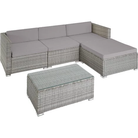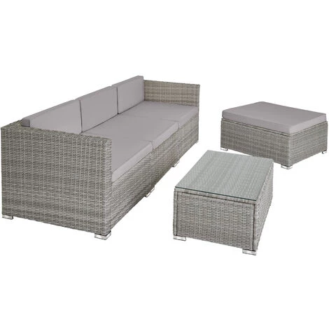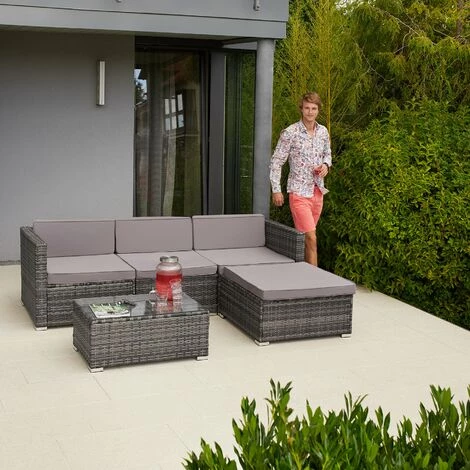 Profitez du soleil dans votre jardin avec notre canapé de jardin FLORENCE 4 places tectake ! Spacieux et confortable, il peut être aménagé en différentes configurations : canapé de jardin avec repose pieds, canapé avec méridienne grâce au pouf, salon de jardin… à vous de choisir ! Le canapé est constitué d’une structure en acier recouverte de résine tressée. Ce matériau rend l’ensemble à la fois léger, résistant et facile à entretenir, idéal pour votre mobilier de jardin. La résine tressée – alternative au rotin naturel – moderne est du plus bel effet aussi bien à l’extérieur sur votre terrasse, qu’à l’intérieur dans un jardin d’hiver, dans une véranda ou même dans votre salon. Contrairement au rotin, la résine tressée ne nécessite que très peu d’entretien : un coup de chiffon humide et le tour est joué ! Les housses des grands coussins sont lavables et peuvent passer à la machine en cas de tâche. Leur surface est par ailleurs imperméabilisée pour ne pas laisser rentrer l’humidité. Nous vous recommandons néanmoins de retirer les coussins lorsqu’il pleut pour une meilleure durée de vie.