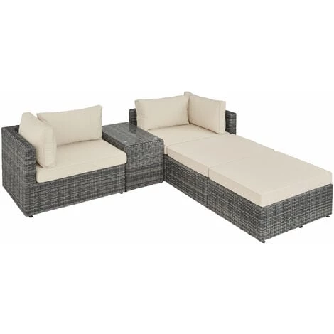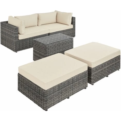 Aménagez notre canapé de jardin SAN DOMINO tectake comme vous voulez ! Installez les différents éléments de ce mobilier de jardin dans votre jardin, sur votre terrasse, sur votre balcon ou même sous votre véranda, toutes les configurations sont possibles ! Envie d’un salon de jardin pour recevoir vos amis ? D’une chaise longue confortable pour prendre un bain de soleil ? D’une méridienne pour votre patio ? Il n’y a que l’embarras du choix avec notre canapé de jardin modulable. Côté entretien, rien de plus simple : la structure légère en aluminium recouverte de résine tressée est à la fois robuste et supporte les conditions météorologiques. Une fois l’été passé, les fauteuils et poufs s’encastrent les uns dans les autres pour ne prendre qu’un minimum de place.