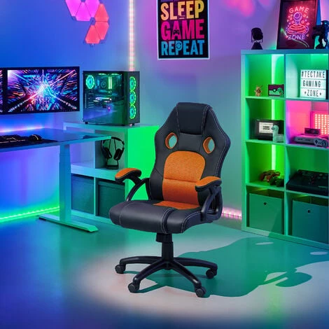 Soyez prêt à démarrer la partie de votre vie avec notre chaise gamer TYSON tectake ! Avec sa forme ergonomique, son rembourrage moelleux et ses incrustations de tissu mesh aéré, ce fauteuil de bureau est le compagnon idéal pour vos longues journées de travail. Le pied en croix robuste de la chaise est équipé de roulettes doubles et antidérapantes ainsi que d’un vérin à gaz de sécurité réglable en hauteur. Le tout garantissant une excellente stabilité à l’ensemble. Grâce aux matières plastiques utilisées, ce fauteuil de bureau tectake reste facile d’entretien, tout en offrant une grande robustesse en plus d’un confort inégalé.