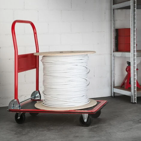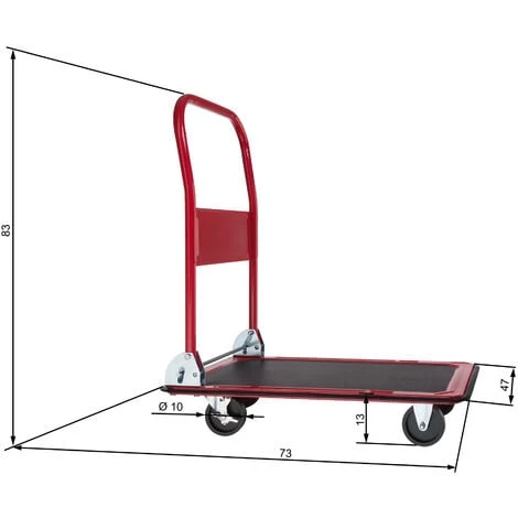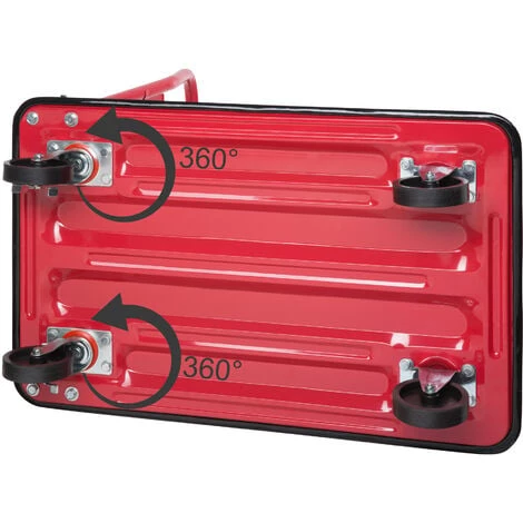 Chariot de Transport, de Manutention, Chariot Desserte à Plateau Pliable en Acier TECTAKE. • Plus envie de porter des charges lourdes ? • Avec ses bords à protections caoutchoutées, notre chariot à plateforme robuste permet de déplacer facilement des charges lourdes et encombrantes, comme les colis, les meubles et les équipements lourds. • La plateforme est recouverte d’un tapis en caoutchouc antidérapant pour assurer la stabilité des objets à déplacer. • Les deux roulettes pivotantes à frein et les deux roulettes fixes permettent de manœuvrer facilement le chariot de manutention. • Après usage, la poignée du chariot se plie sans efforts par commande au pied. • Résistant, robuste et compact : ce chariot à plateforme pratique devient l’assistant idéal dans les entrepôts, au bureau ou pendant les déménagements.