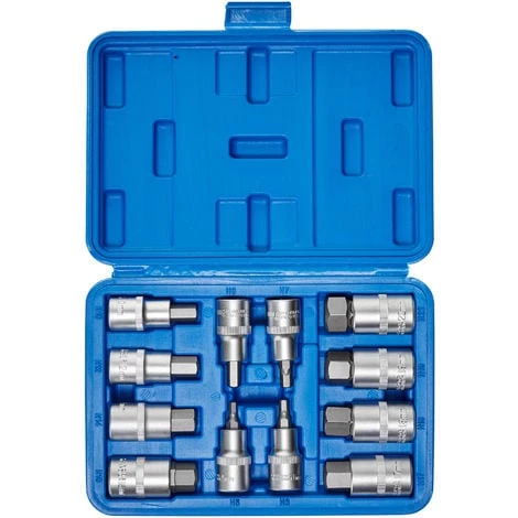 - 12 Embouts hexagonaux, clés à douille ½ pouce (H5, H6, H7, H8, H10, H12, H14, H16, H17, H18, H19, H22).