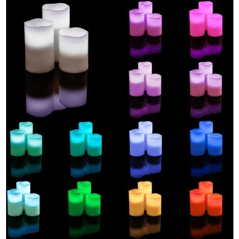 Ensemble, Lot, Set de 6 Bougies à LED d’Ambiance sans Flamme de Couleur Changeante en Cire Véritable + 2 Télécommandes TECTAKE. • Illuminez votre maison et détendez-vous dans une ambiance chaleureuse avec ces bougies à LED de couleur changeante. • Ces merveilleuses bougies LED créent une atmosphère agréable dans chaque pièce, sans le moindre danger d’incendie ni de salissures causées par la cire fondue. • Ces bougies à LED sont idéales pour vos soirées, vos dîners aux chandelles ou pour vos détentes quotidiennes. • Elles conviennent aussi pour les restaurants, les hôtels, les mariages et les fêtes. • Ces bougies possèdent 12 variantes de couleurs, un mode changement de couleur, un mode lumière vacillante et continue, 2 réglages de minuterie, une portée de la télécommande de 4 m.