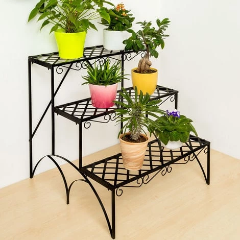 Ce magnifique escalier porte plantes attire tous les regards sur votre jardin, votre terrasse, votre balcon ou votre appartement. Vos différentes plantes seront joliment mis en valeurs sur les 3 niveaux et rappelleront sans aucuns doutes les jardins de Babylone. Il convient parfaitement pour une utilisation à l’intérieur comme à l’extérieur.