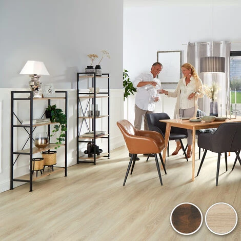 L’étagère LEEDS tectake de style industriel est à la fois une bibliothèque moderne et un meuble pratique pour votre intérieur. Sa structure en acier combinée aux étagères en bois s’intègre à votre salon et lui donne tout de suite du caractère. Les quatre tablettes peuvent aussi bien accueillir vos livres, vos plus beaux objets et cadres photos, ainsi que du matériel pour votre bureau. L’étagère de rangement stable a également une bonne capacité de charge et des pieds à vis réglables. Elle se nettoie facilement et sera un must pour votre décoration intérieure.