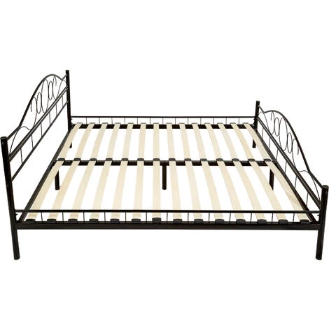 - Cadre métallique de lit avec sommier à lattes en bois de peuplier.