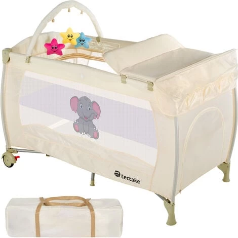 Lit Parapluie, Lit Bébé Pliant, Lit de Voyage Réglable avec Accessoires DODO 132 cm x 75 cm x 104 cm TECTAKE. • Lit de voyage réglable en hauteur. Le matelas à langer est prévu pour des bébés de 0 à 12 mois et peut supporter jusqu’à 11 kg.