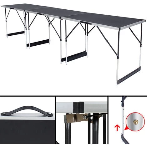 Lot de 3 Tables à tapisser pliables Aluminium TECTAKE. Que ce soit pour tapisser ou même pour la prochaine fête, cette table pliante pratique et stable peut être utilisée de multiples façons. Avec une surface de travail de 300 cm x 60 cm au total, même les travaux les plus encombrants peuvent être exécutés facilement.