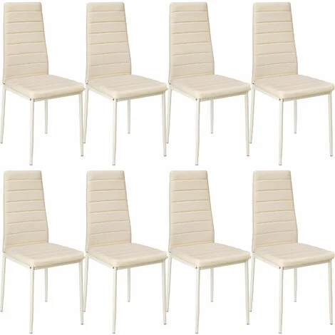 8 Chaises de salle à manger ou de cuisine design, Chaise de Salon, Meuble de salon, Mobilier de Salon TECTAKE. À la fois épuré et moderne, cet ensemble de chaises élégantes embellira votre salle à manger, votre cuisine, la salle d’attente de votre cabinet, ou encore votre café. Nos chaises sont légères, souples et très confortables. Leur assise présente un niveau de confort remarquable. Le rembourrage est d’environ 3 cm d’épaisseur. Le revêtement en matière synthétique résistant est très agréable et facile à nettoyer. De par leur légèreté, les chaises sont faciles à porter. N’abîme pas les sols grâce aux embouts en plastiques qui évitent les rayures et atténuent les bruits.