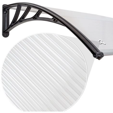 Marquise Auvent de porte TECTAKE. Grâce à ce superbe auvent vous ne resterez pas longtemps sous la pluie. L’auvent est simple et rapide à installer. Le toit en polycarbonate est transparent, indéformable et résiste aux chocs.