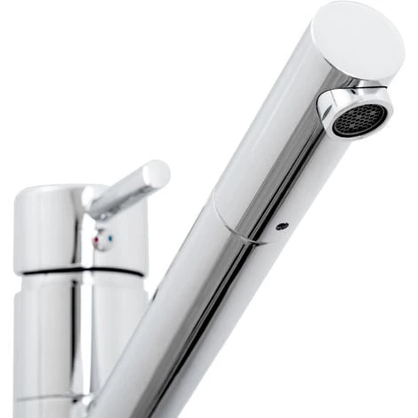 Mitigeur de Lavabo Robinet pour Cuisine et Salle de Bain Design en Laiton Chromé 22,5 cm x 4,5 cm x 22 cm TECTAKE. Vous rêvez d’une cuisine ou d’une salle de bain moderne ? Votre rêve devient réalité grâce à ce mitigeur de lavabo. Ce mitigeur est équipé de cartouches en céramique innovantes. Le robinet est pivotant et peut être ainsi utilisé selon vos besoins. Il est réalisé en laiton chromé facile à entretenir. Le mitigeur «une main» est très précis, il permet un réglage de la température à souhait. Les 2 tuyaux de raccordement standard, inclus dans la livraison, permettent une installation simple et rapide.