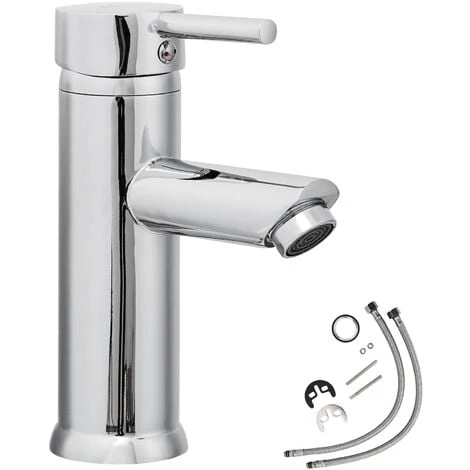 Mitigeur de Lavabo Robinet pour Salle de Bain Design en Laiton Chromé 13 cm x 4,7 cm x 22 cm TECTAKE. Vous rêvez d’une salle de bain moderne ? Votre rêve devient réalité grâce à ce mitigeur de lavabo. Grâce à son design élégant, votre salle de bain devient une oasis de bien-être. Ce mitigeur est équipé de cartouches en céramique innovantes. Il est réalisé en laiton chromé facile à entretenir. Le mitigeur «une main» est très précis, il permet un réglage de la température à souhait. Les 2 tuyaux de raccordement standard, inclus dans la livraison, permettent une installation simple et rapide.
