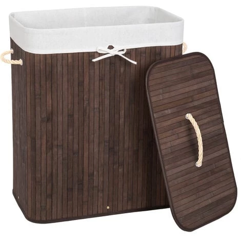 Panier à Linge, Corbeille à Linge, Bac / Sac à Linge Sale Rectangulaire en Bambou TECTAKE. Ce magnifique panier à linge amène de l’ordre chez vous, fini les vêtements sales qui trainent au sol. Il peut également servir de rangement pour les jouets des enfants, les chaussures et autres objets. Notre panier à linge s’illustre par sa belle apparence et offre une grande contenance. Le sac à linge amovible est particulièrement pratique.