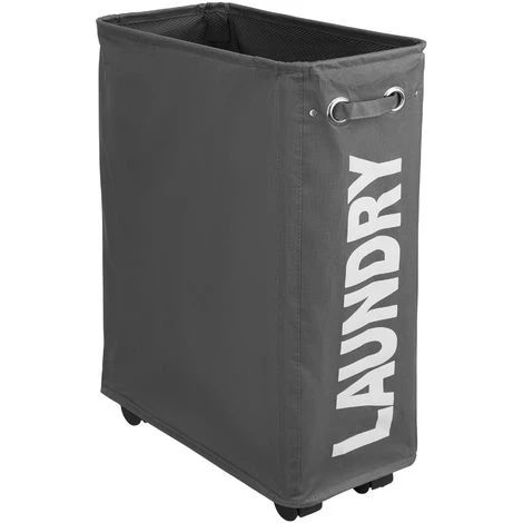 Optimisez le rangement de votre intérieur avec notre panier à linge étroit sur roulettes tectake ! Utilisez les espaces perdus dans votre salle de bains, votre chambre ou votre buanderie pour stocker votre linge sale. Notre corbeille à linge se glisse dans les recoins de votre maison et sait se faire discrète grâce à son design minimaliste. Doté de petites roues, notre bac à linge se glisse facilement sous un plan de travail ou un comptoir. Ses poignées permettent une préhension optimale, vous pouvez même les utiliser pour faire rouler le sac à linge sale jusqu’à votre machine à laver sans effort. Une fois replié, notre panier à linge tectake ne prend que très peu de place. Astuce : achetez-en plusieurs et séparez le linge blanc des couleurs en un clin d’oeil.