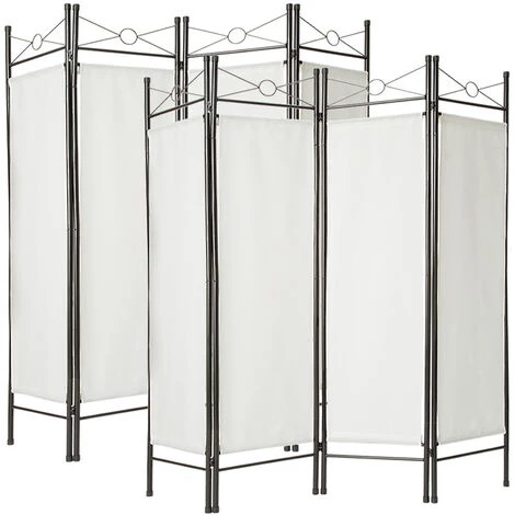 Paravent, Séparation de pièces, Cloison amovible, 4 Panneaux Pans Pliables en Toile Polyester 180 cm x 160 cm x 2,5 cm TECTAKE X 2. Un fantastique paravent à prix défiant toute concurrence. Un véritable accroche regard pour votre intérieur. Il assure une atmosphère chaleureuse de bien-être sous votre toit. Ce paravent élégant peut être utilisé de manières polyvalentes : Comme mur de séparation, vestiaire ou simplement comme décoration.