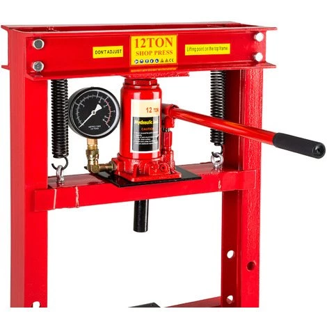 Presse d’Atelier Hydraulique 12 T 7 Niveaux de Réglage TECTAKE. • Réalisez Facilement avec cette Presse d’Atelier Hydraulique TECTAKE tous vos Travaux d’Assemblage et de Réparation en un Tour de Main ! • Grâce à son Cylindre Hydraulique exercez une Grande Pression réglable grâce au Manomètre intégré. • La Hauteur de Travail ajustable sur 7 Niveaux permet de s’adapter à toutes les Situations. • Idéal pour l’Agriculture, l’Atelier, le Garage, l’Industrie, etc.