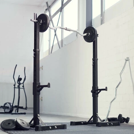 Support pour Haltères Barres CapacitĂ© Maximum 100 KG 49 cm x 46 cm x 157 cm Noir TECTAKE. La flemme d’aller Ă la salle de sport ?! Avec ce support pour haltères, vous pouvez rester chez vous et vous entraĂ®ner avec plaisir. Ce support robuste et stable convient parfaitement pour votre salle d’entraĂ®nement Ă la maison. Le support pour haltères est rĂ©glable en hauteur et s’adapte Ă chaque personne. Si vous utilisez une barre Ă disques, vous pouvez faire des exercices pour muscler les pectoraux, le dos, faire des squats, etc.