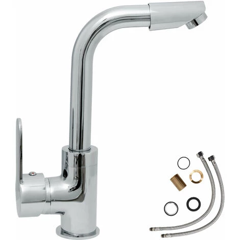 Mitigeur de Lavabo Robinet pour Salle de Bain et Cuisine Design Laiton Chromé Pivotant à 360° + Flexibles 15,5 cm x 4,5 cm x 28,5 cm TECTAKE. Vous rêvez d’une salle de bain ou d’une cuisine moderne ? Votre rêve devient réalité grâce à ce mitigeur de lavabo. Grâce à son design élégant, ce mitigeur transforme votre lavabo en véritable attrape regard. Ce mitigeur est équipé de cartouches en céramique innovantes. Le robinet peut être pivoté à 360°. Il est réalisé en laiton chromé facile à entretenir. Le mitigeur «une main» est très précis, il permet un réglage de la température à souhait. Les 2 tuyaux de raccordement standard, inclus dans la livraison, permettent une installation simple et rapide.
