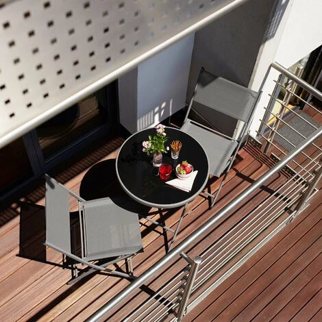 Salon de Jardin DĂĽsseldorf, 1 Table et 2 Chaises de Jardin Pliants, Set de Balcon, de Bistrot en Acier et Textilène Noir TECTAKE . • Avec cet ensemble de deux chaises et d’une table, amĂ©nagez un petit espace agrĂ©able sur votre terrasse, sur votre balcon ou dans votre jardin pour accueillir vos invitĂ©s, vos amis, votre famille et boire le thĂ© ou le cafĂ©. • La matière des chaises rĂ©sistante au dĂ©chirement laisse passer l’air et permet de profiter, mĂŞme par temps chaud, d’une assise confortable et fraĂ®che. • Le revĂŞtement de siège souple de ce set de bistro rend le pliage et le dĂ©pliage faciles. • LĂ©ger et pliable, vous pouvez transporter ce set de balcon aisĂ©ment et le ranger de manière peu encombrante. • Le cadre robuste en acier donne Ă ces meubles de jardin une grande stabilitĂ©. • Avec ce salon de jardin, facile Ă entretenir, prenez votre petit-dĂ©jeuner, votre dĂ©jeuner ou votre dĂ®ner Ă l’air libre et profitez d’un moment convivial.