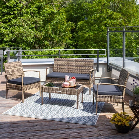 - Cet ensemble en Poly Rotin de haute qualité et d’un design modern est idéal pour recevoir ses amis dans une ambiance conviviale et chaleureuse.