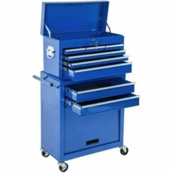 - 1 Servante d’atelier avec 1 Caisse à outils amovible et 2 Clés.