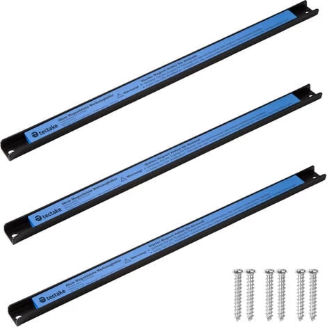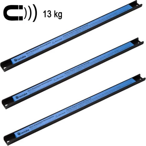 Set de 3 Barres magnétiques, Porte-outils mural en Acier Bleu TECTAKE. • Vous aimez que vos outils soient toujours rangés et à portée de main ? • Avec cette barre magnétique porte outils, vous savez tout de suite où se trouve l’outil dont vous avez besoin. • Marteaux, scies, pinces, niveaux à bulle et tournevis s’y fixent sans problème. • Plus besoin de fouiller dans votre tiroir à chaque fois. • La barre se visse au mur en toute simplicité et supporte aisément une charge de 20 fois son propre poids. • Les outils lourds comme les petits sachets de vis peuvent y être attachés. • Idéale pour votre atelier, votre cave, votre garage ou tout autre espace de rangement.