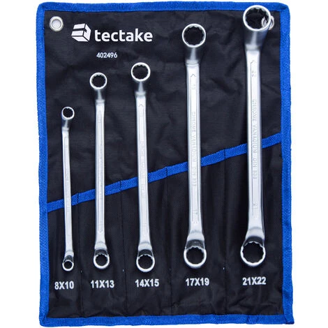 Jeu, Kit, Set de 5 Clés Polygonales Doubles en Acier Chrome Vanadium + 1 Trousse de Rangement 37 cm x 27 cm TECTAKE. • Ce set de qualité comprend 5 clés polygonales doubles de tailles différentes. • Avec ce jeu, vous avez toujours la bonne clé à portée de main. • Ce kit de clés est livré dans une trousse pratique ; chaque clé y a sa place attitrée. • La trousse possède des œillets pour que vous puissiez l’accrocher aisément au mur.