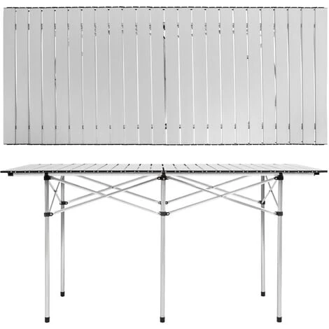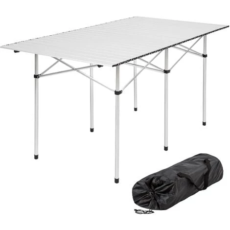 Table de camping, Table de pique-nique Aluminium Pliante 140 cm x 70 cm x 70 cm TECTAKE. Table de camping, Table de camping pliante, table de pique-nique. Cette table de camping fonctionnelle en aluminium est très polyvalente. Que ce soit dans le jardin, à la plage, lors de festivité ou pour le camping etc., on a toujours besoin d’une table facile à transporter et rapide à installer. La table est équipée d’un cadre pliable pratique et s’ouvre en un tour de main. La table peut être rangée de manière peu encombrante et se transporte facilement dans son sac de transport.