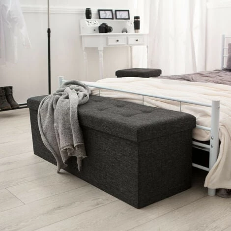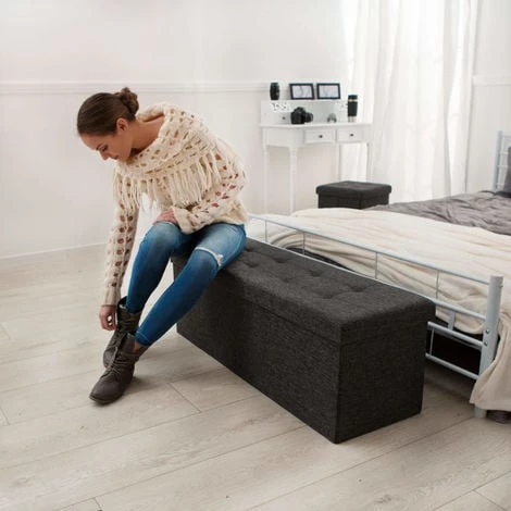 Tabouret Siège Banc Pouf Coffre de Rangement Cube Pliant Moderne Rembourré 110 cm x 38 cm x 38 cm TECTAKE. Vous êtes à la recherche d’un siège confortable pour votre intérieur et vous voulez pouvoir l’utiliser en même temps comme grand espace de rangement. Voici le tabouret parfait pour vous. Il est utilisable de multiples façons, soit dans votre séjour comme siège confortable avec espace de rangement, soit dans le couloir comme repose-pieds. Dans ce coffre de rangement, vous pouvez ranger des draps, des vêtements, des chaussures, des magazines, des jouets, des DVD ou d’autres objets. Son couvercle rembourré rend l’assise confortable. L’association de différents matériaux de qualité garantit une haute stabilité et une longue durée de vie. Ce tabouret en forme de cube est idéal pour enfiler vos chaussures et allie l’esthétique à l’utilité, il vous offre un bel espace de rangement et embellira votre intérieur par son design. De plus, il se replie et se range en quelques gestes très simples.