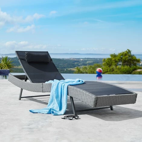 Profitez du beau temps avec notre bain de soleil DELPHINE 5 positions tectake ! Avec ses courbes élégantes, cette chaise longue est résolument un mobilier de jardin tendance et contemporain. Grâce à ses 5 positions, réglez le dossier selon l’activité que vous préférez : lire, dormir, bronzer ou tout simplement profiter du soleil sur votre terrasse en bordure de piscine. Le tissage tendu de l’assise est à la fois confortable et pratique : les gouttes de pluie ne stagnent pas dessus. La structure du transat est en aluminium recouverte de résine tressée. Ce matériau est une bonne alternative au rotin naturel et résiste aux conditions météorologiques dans votre jardin. La résine tressée s’entretient facilement en plus d’être très légère : vous orienterez sans effort votre chaise longue en fonction du soleil.