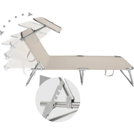 Chaise longue de jardin, Transat, Bain de soleil, Pare Soleil, Multi positions, Pliable 190 cm TECTAKE X 1. Chaise longue en acier de haute qualité avec pare-soleil intégré. Idéal pour le bain de soleil dans votre jardin ou sur la plage dans un confort assuré. Ce transat, facilement transportable est le compagnon idéal pour se détendre, se reposer et profiter de vacances bien méritées sous le soleil.