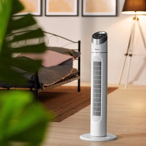 Combattez les vagues de chaleur de l’été avec notre puissant ventilateur colonne tectake. Ce ventilateur avec sa forme élancée propose trois programmes de ventilation, trois vitesses ainsi qu’une minuterie. Vous pouvez également régler l’oscillation pour une ventilation optimale de la pièce. Grâce à son poids léger et à sa poignée de transport pratique, ce ventilateur tour stable est rapidement prêt à l’emploi. La télécommande permet de régler le ventilateur à distance, depuis votre bureau, votre lit ou votre canapé et de rester au frais pendant la canicule et la hausse des températures.