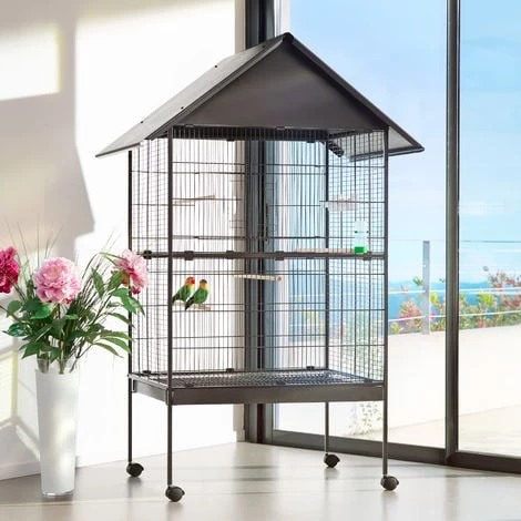 - Grande volière pratique à toit en pente.